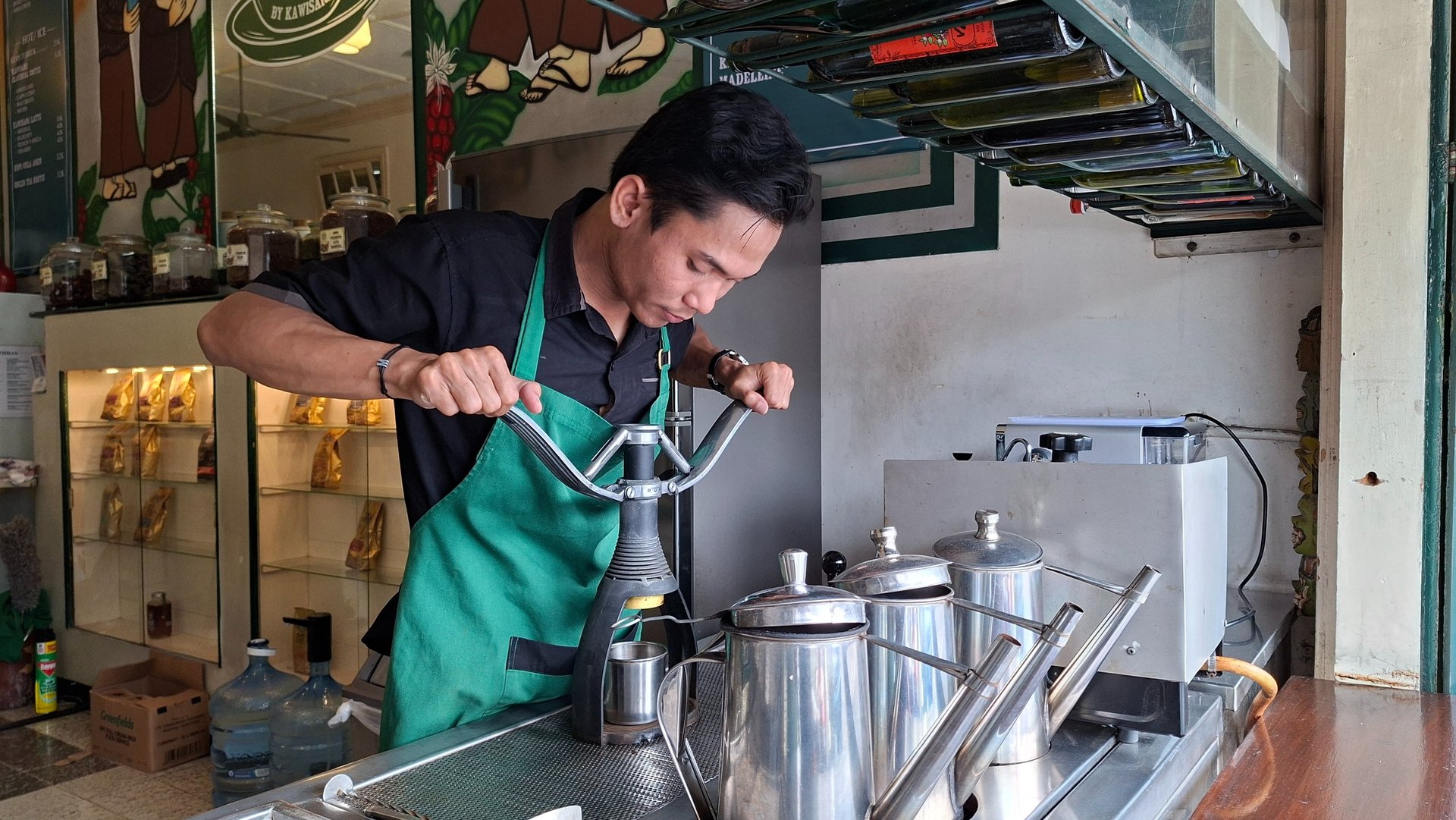 "The coffee beans come directly from our own plantation," the cashier told me. "It is 100% organic."
