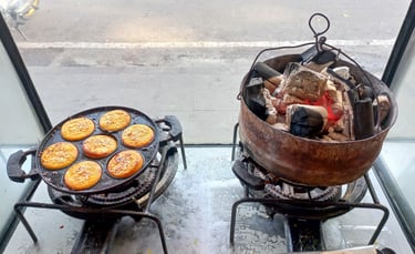 The charcoal adds a subtle, smoky fragrance that you cannot get from a regular gas stove. It creates a slightly firm, "baked" skin on top while keeping the inside incredibly moist and molten.