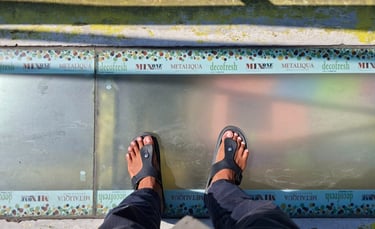 "In the beginning, visitors had to use protective covers over their sandals and shoes to walk on the glass, but it was hard to manage," I told them. "Now, because everyone walks in their shoes without covers, the glass has become blurry."